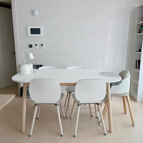 #못생긴 접이식의자, 이케아 식탁을 구입할 때 의자 역시 필요했어요 공간 활용하기 좋은 의자를 보고 이케아 가짜 접이식 의자를 샀어요 평소에는 저랑 파트너 두 명을 사용하다가 손님 올 때 두 개 더 꺼내서 사용 중 손님용은 접이식이라 보관하기가 편합니다.파트너와 내년에 신혼집으로도 사용할 예정인 집이기 때문에 인테리어 할 때 꼭 화이트톤으로 하라고 해서 집 대부분이 화이트톤으로 되어 있습니다.